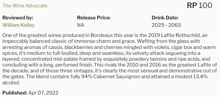 Le millésime 2019 est reconnu pour son équilibre parfait entre concentration, finesse et pureté aromatique. Déjà fascinant après aération, il évoluera magnifiquement sur plusieurs décennies.