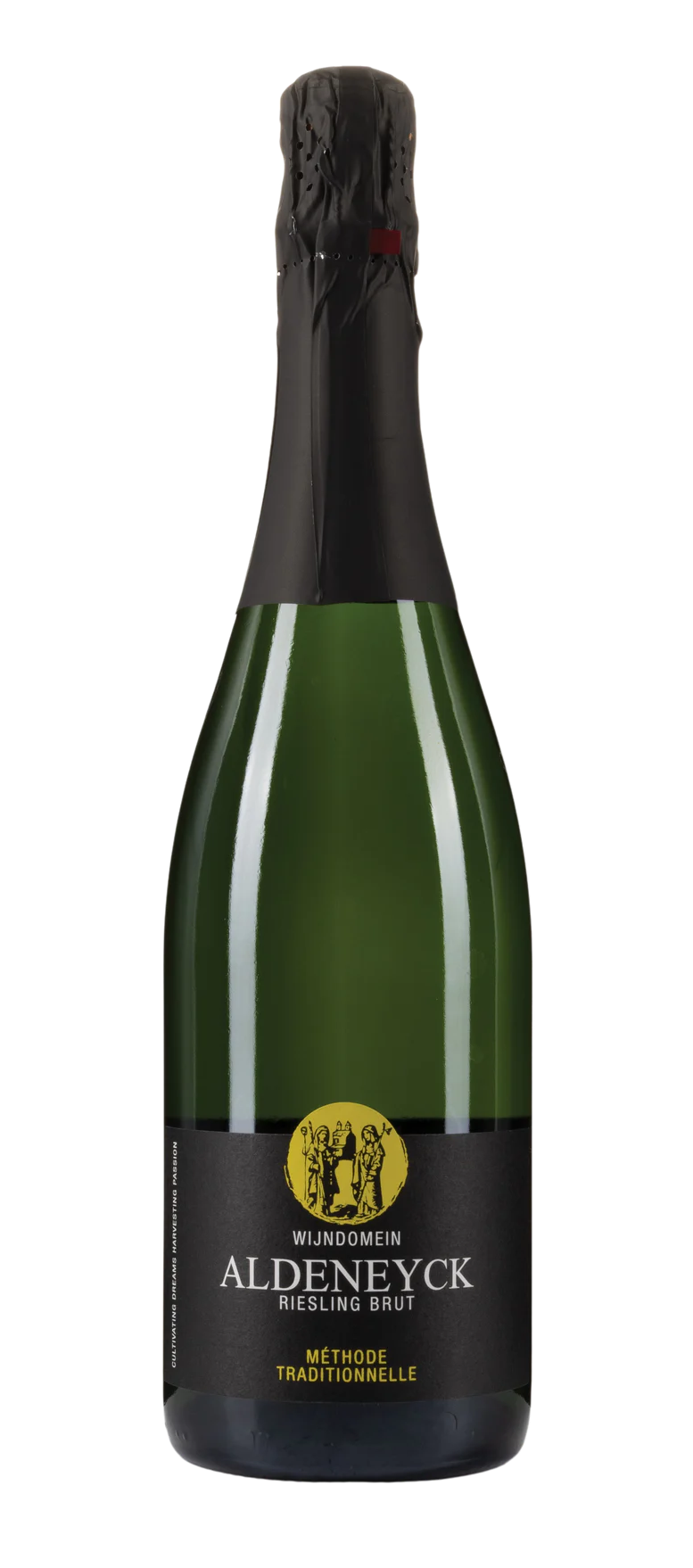 Aldeneyck Riesling Brut is een verfijnde mousserende wijn uit de Maasvallei in Limburg, België, gemaakt volgens de traditionele methode met 12 maanden sur lattes en 100% Riesling druiven afkomstig van minerale kiezel- en grindbodems. De wijn toont een zachte goudgele kleur met een weelderige mousse van fijne belletjes en opent met een expressieve neus van perzik, appel, nectarine en citrus.